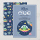 Cute Boys Blue Space Alien Galaxy 1st Birthday Invitation