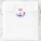 This birthday party sticker has a fun boat theme. At the bottom, there are three sail boats floating in the wavy water. You can easily customise the child's name and age. Cocoa Studio