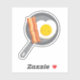 A cute illustration of a perfect breakfast pair of bacon and egg shaped like a heart on a saucepan.