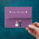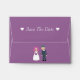 Pretty purple Save The Date Wedding invitation envelopes with cute bride & groom cartoon characters illustration. Pretty hearts design inside the envelopes. Text is fully customisable to suit your needs – just click on the “Customise it” button - loads of fonts & colours to choose from. Envelope colour is also customisable. Check my store for matching products.