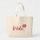 Cute bride tote bag with red lips. Add the bride's name to personalize it.