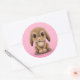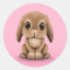 Cute Brown Baby Bunny Rabbit on Pink Classic Round Sticker