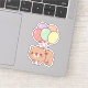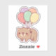 A cute little brown bear is flying around with balloons in purple, red, green, orange and yellow tied to its waist. Kawaii doodle for bear lovers!