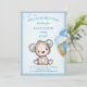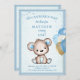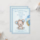 Send these adorable, first birthday for boy designs with a cute brown bear, blue confetti and blue/gold/white balloons on baby blue blanket with stitched hem. Templates created for you.