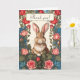 Cute Brown Bunny Rabbit Pink Rose Garden Thank You Card
