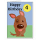 This colourful editable children's greeting card shows a cute cartoon brown dog with the number 4 and the caption “ Happy Birthday”