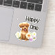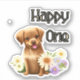 Cute brown dog with flowers and text HAPPY ONE