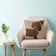 A lighthearted design for anyone who loves Dachshunds. A cute cartoon of an adorable doxy stretches around the front and back of the pillow. The background colour can be changed to fit any room. Buy two for a creative look on a bed or couch. A fun approach to home decor. Original vector art by Night Owl's Menagerie, 2014. **The artist only allows this design for sale on Zazzle. Any other site that sells this design is copyright law infringing.
