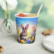 Celebrate Easter in style with this charming paper cup, featuring a delightful watercolor painting of a cute brown baby bunny in a field of vibrant spring flowers and colourful Easter eggs on both the front and back. The text “Happy Easter” is customisable or can be removed, allowing you to add a personal touch to your celebration. Perfect for serving drinks at Easter brunches, egg hunts, and festive gatherings, this cup brings a cheerful and whimsical touch to your table. A fun and festive addition to your Easter party supplies!