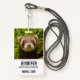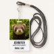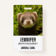 Name badge with an adorable photograph featuring a small brown ferret standing up in some long grass. Cute as can be!