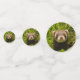 Table confetti with an adorable photograph featuring a small brown ferret standing up in some long grass. Cute as can be!