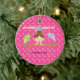 This is an adorable Christmas ornament for that gymnast in your life! It's a cute gymnast . She's wearing a purple bodysuit . The background is hot pink with white polka dots. She's doing a handstand on a balance beam. Next to her is a lavender shooting star and a light green one on the other side. Check out the many other designs and colours in this line. Cherish this keepsake for many ,many years! ©JW Illustrations