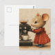 Cute Brown Mouse Makes Coffee Postcard