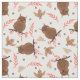 The pattern on this fun fabric includes a brown owl on a branch and a little brown bird flitting about. Along with the birds are pastel orange leaves. The images are placed on a white background. Cute!