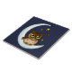 Cute Brown Owl Crescent Moon Stars Blue Tile