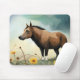 Cute brown pony in the floral field mouse mat