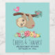 Cute Brown Sloth Hanging Upside Down Baby Shower Wine Label