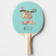 Ping pong paddle with an illustration of a cute brown sloth hanging upside down. This funny little guy is holding onto a branch which has a little pink bird on