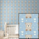 Cute Brown Teddy Bears White Stars & Heart on Blue Wallpaper