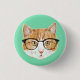 Cute Brown & White Cat Wearing Glasses 3 Cm Round Badge