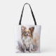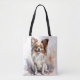 CUTE BROWN & WHITE PAPILLON PUPPY DOG TOTE BAG