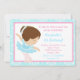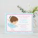 Cute Brunette Ballerina and Blue Damask Invitation