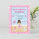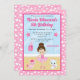 Cute Brunette Haired Girl Ballerina design with ballet slippers and accessories, cat and stars with pink hearts background