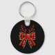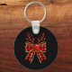 Cute Buffalo Plaid Coquette Bow Reindeer Christmas Key Ring