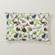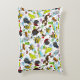 The cushion is small to medium sized. It can be washed. It is well constructed. The material used is pleasant and feels decent quality. It has a very slight plush feel which is good. It is well labelled and its care clearly stated. Theres nothing not to like about it. All in all a good item. The deduction of one star overall is due to long delays in delivery to the UK. It's not clear if this was due to Zazzle or somewhere else in the chain as I did not receive status updates of dispatch or progress. I cannot comment anymore on that other than to say that was our experience but it may not be the same for you. The printing was surprisingly close to what we were expecting. Its an art piece and on material so its hard to assess the precision of printing but it seems close to the original. The soft lines are reproductions of the original. The colour is a fair reflection of the painting. This was printed in the US and it looks like US quality. No issues.