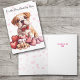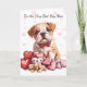 This cute card for the Best Dog Mom or Dad makes a great Valentine's Day or Mother's Day card, but can also be used for a birthday or any other special occasion. All the text is easily changed to anything that you'd like. The front has an image of an adorable Bulldog puppy wearing a red bowtie. He sits behind a group of pink and red heart cookies, with two toy puppy dogs. The inside currently says "You make my tail WAG".