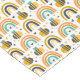 A tablecloth with a cute patterned background. Whimsical bees and rainbows with little hearts and stars scattered around. Adorable and delightful.