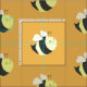 Fabric featuring a cute, happy and smiling bumble bee on an orange background.