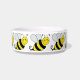 A big yellow and black bumble bee with a bee pattern with some flowers, hearts, swirls, twirls, and bee trails.