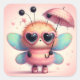 Cute Bumble Bee with Umbrella Square Sticker