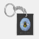 Cute Bumblebee on Blue Flower Nature Black Key Ring