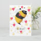 Cute Bumblebee with Pink Hearts on Yellow Daisies Holiday Card