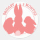 NewParkLane - Round Stickers, with three cute baby bunnies in coral pink. A sweet design for your baby's monthly milestone. Customise with your name, date or other text for a personalised design.