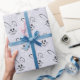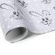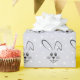 Cute bunny face doodle with big teeth on white polka dots and purple background.