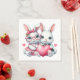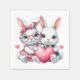 Paper napkins with an illustration featuring 2 white furry bunnies sharing a big pink heart. The girl bunny is wearing a cute bow on her head and heart-shaped glasses. The boy bunny is wearing an adorable little suit with a tie.