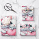 Wrapping paper sheets with an illustration featuring 2 white furry bunnies sharing a big pink heart. The girl bunny is wearing a cute bow on her head and heart-shaped glasses. The boy bunny is wearing an adorable little suit with a tie.