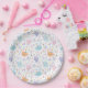 Cute bunnies with carrots and flowers pastel colou paper plate