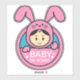 Ensure extra safety and smiles with this 'Cute Bunny - Baby on Board' sticker! Featuring a sweet baby in a pink bunny outfit, this eye-catching sticker is perfect for your car, alerting fellow drivers to be cautious. Its charming design also adds a touch of joy to your vehicle, making every trip a bit brighter.