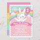 Adorable Bunny Birthday Party Invitation, featuring a cute bunny, adorable little clouds and a colourful rainbow. Perfect for any age!