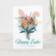 Cute Easter greeting card featuring a bunny holding a bouquet of colourful spring flowers. "Happy Easter" is displayed in bold script lettering with your name shown below. Personalise the inside of the adorable Easter card by adding your typed or handwritten message. The back of the card features a matching floral pattern.