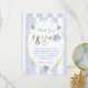 This cute baby bunny clothesline theme features a custom hand-painted frame of a crisp blue vertical stripe pattern accented with a lush greenery wreath, creating a clean, classic, and welcoming look. A sweet watercolor clothesline is strung across the center, proudly displaying tiny, adorable items, each featuring a cute bunny dressed in blue. The scene is completed with a darling blue bow holding a bunch of fresh carrots, and bright, cheerful daffodils, all rendered in a soft watercolor style. A heartfelt thank you message is included, you can easily change it and add your own details and change the font style, size color and placement if you would like to.