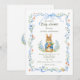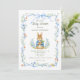 Cute Bunny Boy Floral Blue Bow Baby Shower Invitation