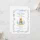 Celebrate the upcoming arrival of your little one with this classic storybook-inspired baby shower invitation. Featuring a charming, hand-painted watercolor bunny holding a carrot, this design is framed by delicate blue ribbons, whimsical bows, and soft garden florals.