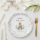 Cute Bunny Boy Floral Blue Bow Baby Shower Paper Plate
