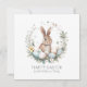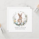 Send heartfelt Easter wishes with this beautifully designed flat greeting card, featuring a charming brown bunny nestled in an Easter-themed wreath of pastel-coloured eggs, delicate florals, and lush greenery. Soft watercolor splashes add an artistic touch, enhancing the whimsical, springtime feel.