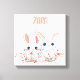 A beautiful white stretched canvas print featuring two adorable bunnies in a soft pink theme on a clean white background. Cozy, lovable, and full of heart, it makes a perfect gift for babies, kids, moms-to-be, and dear friends. Customizable with your own special words to create a truly meaningful and memorable keepsake—ideal for decorating nurseries and kids’ rooms with warmth and charm.